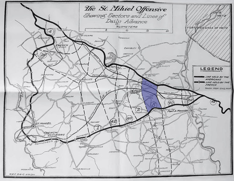 In preparazione della prima offensiva autonoma del neonato primo esercito Americano a Saint Mihiel, tra il 28 ed 30 agosto 1918 le truppe della quinta divisione vennero trasferite dalla zona di addestramento di Arches verso le sponde della Mosella dove le manovre ripresero immediatamente con particolare attenzione alle operazioni di guerra in campo aperto.